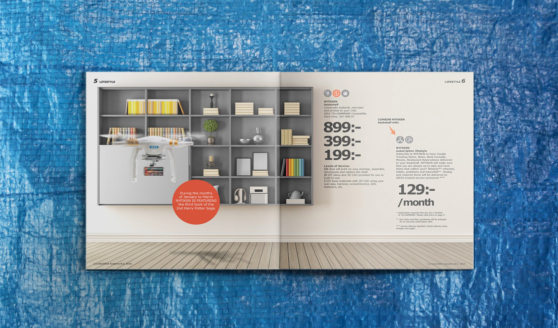 Image 1: IKEA Design Fiction catalogue; what if all IKEA´s products were smart? Image 2: A familiar format acts as a catalyst for the ideas, a tangible and highly provocative format.